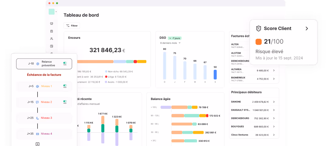 - Analysez vos indicateurs de performance (DSO, taux d’encaissement, encours client…) pour mesurer les progrès réalisés et identifier les axes d’amélioration.