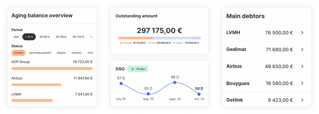 Bruno Vandome mainly uses the dashboard for a consolidated view. “The overview with the aging balance, DSO, major invoices and monthly cash inflows is extremely useful,” he notes.