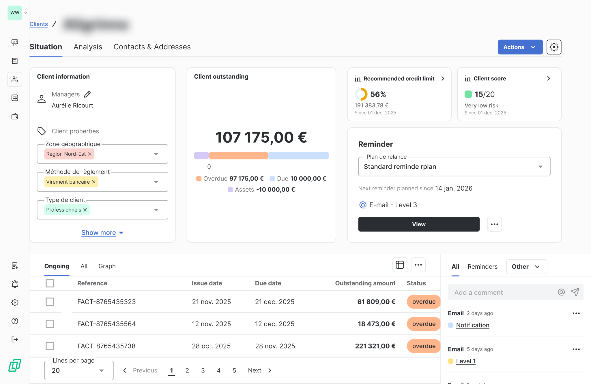 The default score, the average late payment and the recommended outstanding amount are synchronised in real time to offer you a reliable view.