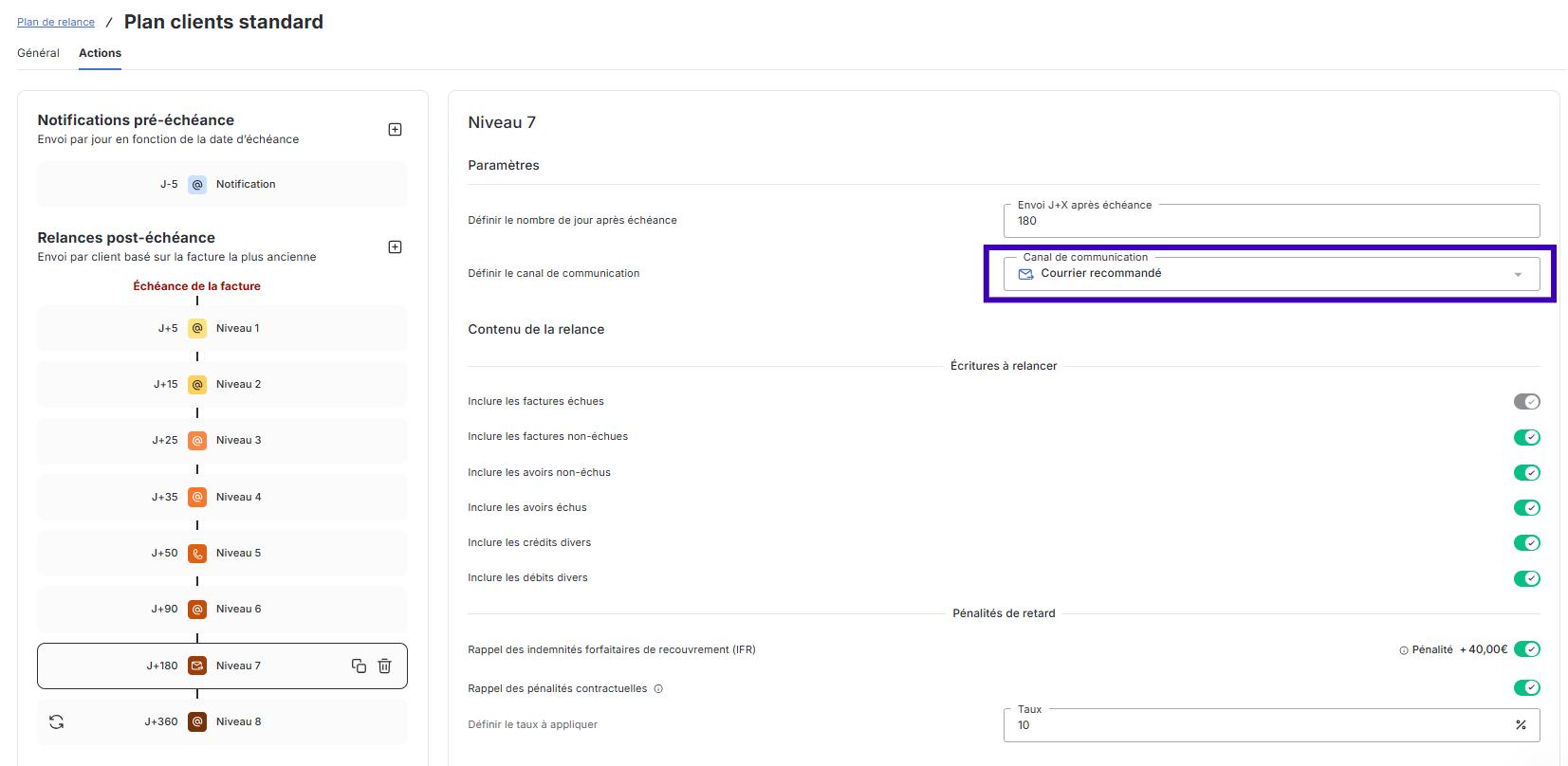 In your recovery scenarios, you can use the Mail channel, by simple mail or by registered mail, thanks to the integration between LeanPay and MySendingBox. This channel is set up directly in the configurations of your recovery plans.