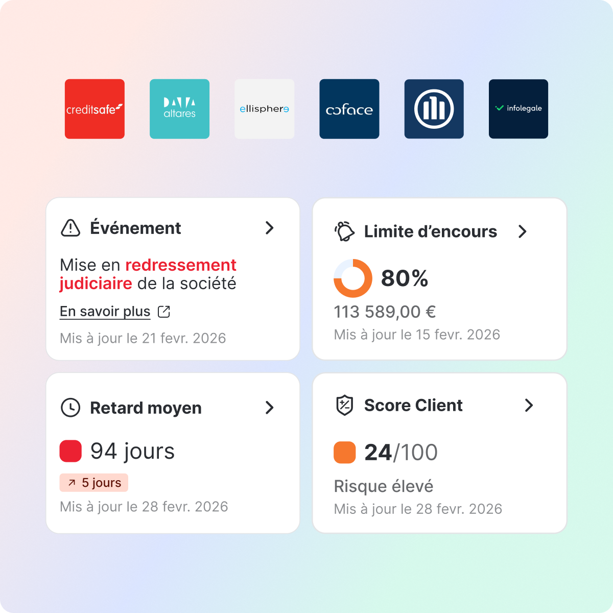 Exploitez des données externes via vos partenaires : Altares, Coface, Allianz Trade, Creditsafe…