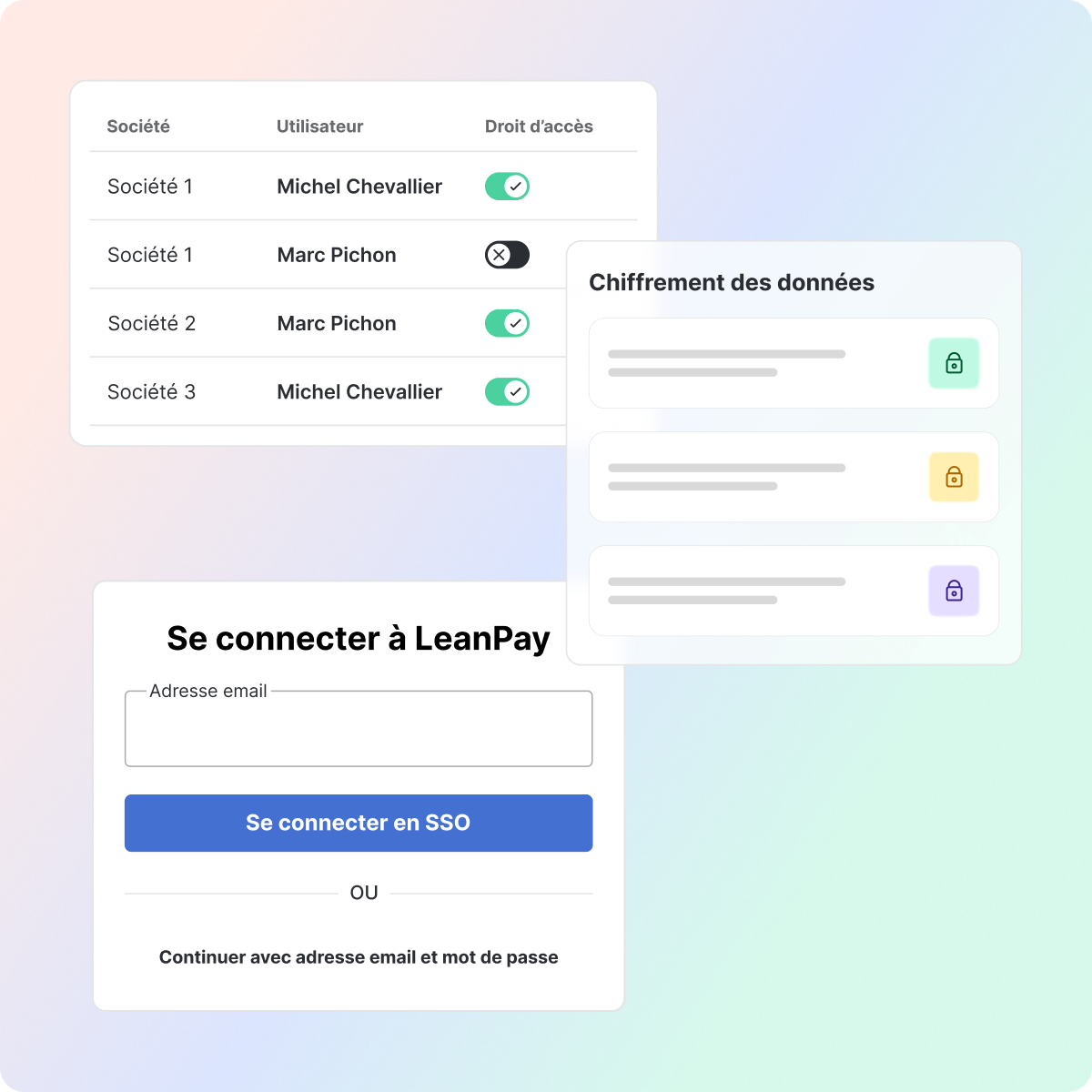 LeanPay applique des standards de sécurité élevés pour protéger vos données financières. Les accès sont sécurisés et paramétrables selon les rôles, les données sont cloisonnées par entité, et la connexion SSO permet de renforcer le contrôle des accès.