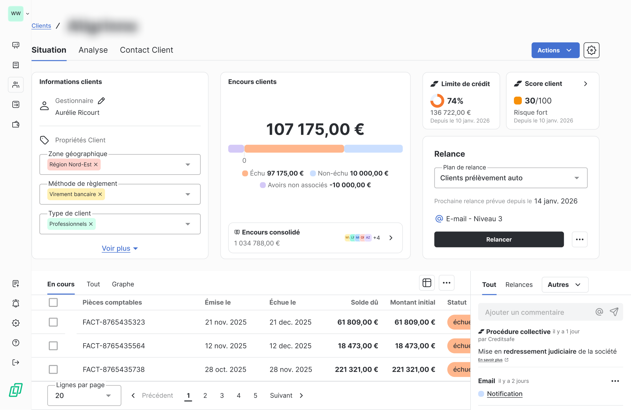 En centralisant les données Creditsafe dans LeanPay, vous adaptez plus facilement vos relances, vos encours et vos actions de prévention.